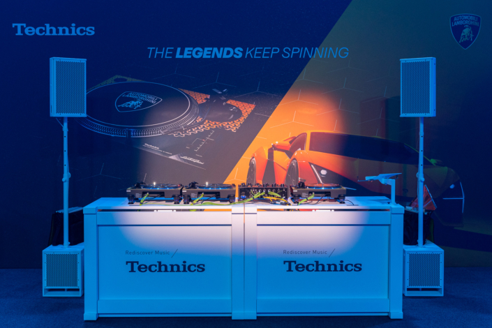 PL Audio Monitoring (B12Sub und F10pro) für Vinyl-DJ Marco Maribello auf dem Technics x Lamborghini Stand im Rahmen des Lamborghini Days UK 2025.